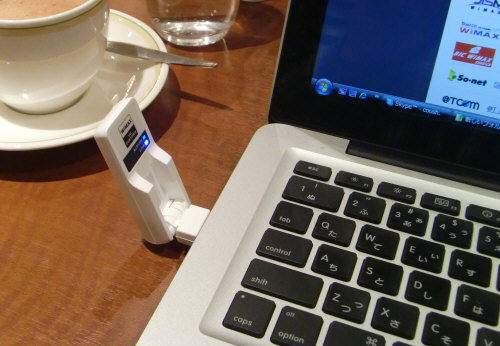 さて、実際の使い勝手はどんなものかと、秋葉原の喫茶店で試してみました。端末はUSB型のWMX-U01。