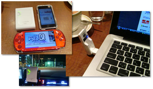 スイッチを入れればすぐに無線LANアクセスポイントとなり、外でPSPやiPodTouchでインターネット接続ができます。