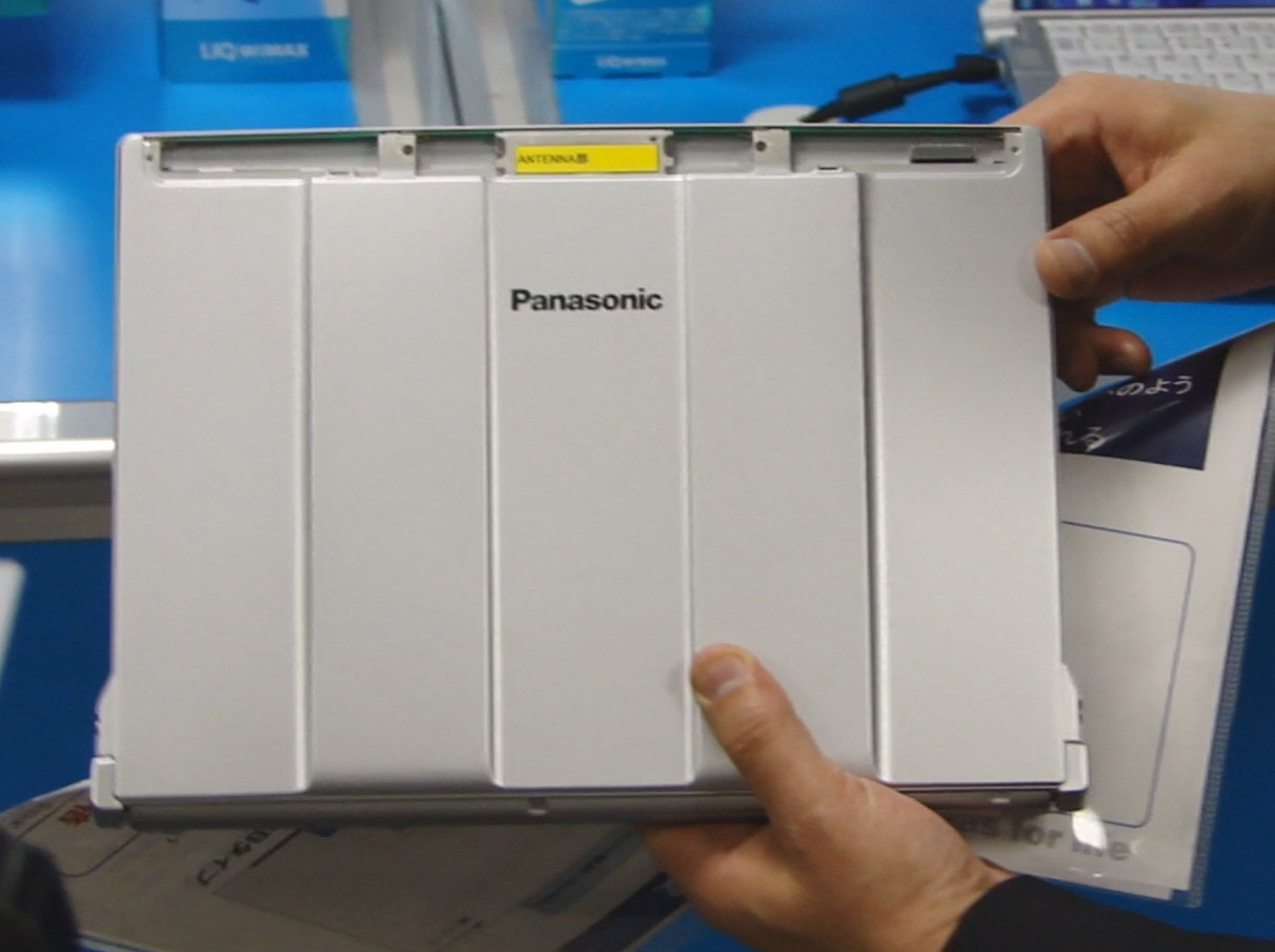 こちらは以前取材の時に見せてもらった、WiMAXのアンテナ。パナソニックではWiMAXの内蔵にあたり、WiMAXの無線基地局をわざわざ社内に設置されたそうです。