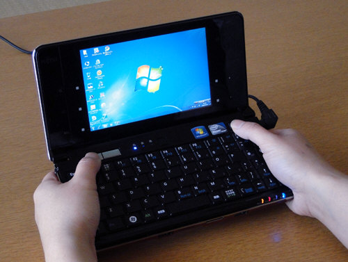 まずは富士通の2010年春モデルのウルトラモバイルノートのFMV LOOX U/G90。重さが約495gしかないにもかかわらず、しっかりとWindows7が動作するれっきとしたWindowsパソコン。実際に手にしてみると、想像以上の軽さに驚きました。