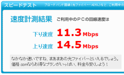 一応比較のために、家のBフレッツに無線LAN(11g)で接続し、スピードテストをしてみると…下り11Mbps。