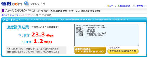 WiMAX スピードテスト結果(価格.com ブロードバンドスピードテスト)