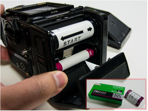 このカメラはブローニーフィルムという、プロ向けのフィルムを使うカメラ。フィルムはヨドバシカメラで5本2000円ほどで買えましたが、最初装填の仕方がよくわからなくて、2本ダメにしてしまいました。