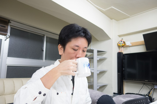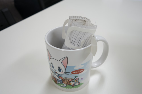 パッケージを開けて、ドリップバッグをマグカップにセット。うーん、このたまらない