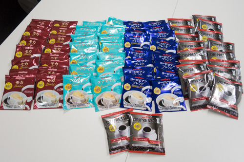 ちなみに今回注文したお試しセットは、ドリップレッソとモカが20袋ずつ、ヨーロピアンブレンドとグアテマラが15袋ずつの計70袋とたっぷり入って、