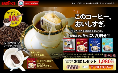ところがあのコーヒーのブルックスが、お湯を注ぐだけでエスプレッソの味わいが手軽に楽しめる「 ドリップレッソ 」を発売、これが巷では好評を博しているようです。