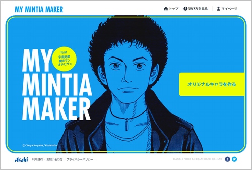 このMY MINTIA MAKERは、宇宙兄弟、働きマン、オチビサンの人気コミックの顔パーツを自由に組み合わせて、オリジナルキャラクターを作れるWEBキャンペーン。