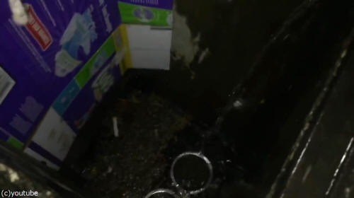 翌日…大量の水が流れ込んだ排水溝には、水が溜まっていました。