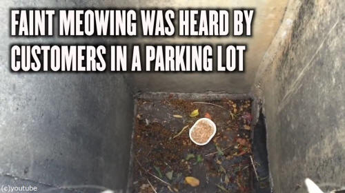 姿は見えないものの、排水溝の奥から聞こえる仔猫の鳴き声。