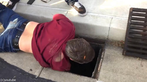 何とか救出を試みるも、狭い排水溝はとても人間が入れる広さではありません。