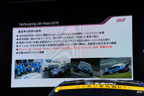 GTやニュルブルクリンク24時間レースなど、レース全般の総監督、辰己英治氏によるカンファレンスが開かれ、スバルの取り組みについて話してくれました。