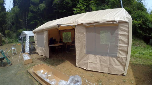 ちなみにこのテントは常設用ではないらしいのですが、2か月以上設置したままの現在、まったく問題なし。雪や台風に耐えられるかどうかはまだわかりませんが、よほどの規模でなければ大丈夫そう。