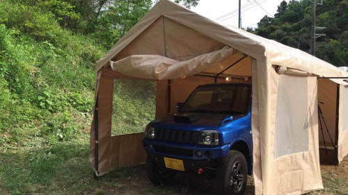 ガレージテントと言うだけあって、車もこの通り、余裕で入ります。