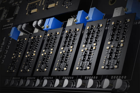 一方、ヘッドフォンアンプ部に大きな仕様変更は見られない。すべてディスクリート部品で設計された「ディスクリートNFCA(Nested Feedback Composite Amplifier)ヘッドフォンアンプ」はバランス回路4chにシングルエンド回路2chの6chという構成で、最大出力は10,000mW×2@16Ω。リレー制御と抵抗ネットワークのハイブリッド構成、そのうえデジタルボリュームとも組み合わされるボリュームコントロールも継続採用だ。