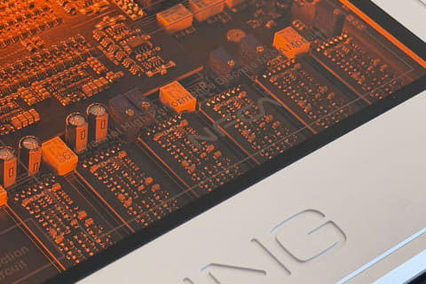 電源設計もリファインされた。DAC部とヘッドフォンアンプ部の電源供給が独立したデジタル/アナログ電源分離設計は同じだが、DX9 Discreteには純抵抗出力電源が搭載されている。ナノ秒レベルで電気信号をON/OFFする超高速なデジタルスイッチングロジックから生じるノイズがアナログ信号に与える悪影響を避けるための配慮なのだという。