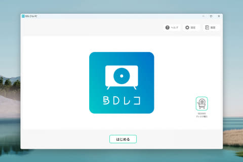 インストールしたソフトを立ち上げると、青い「BDレコ」のロゴマークをあしらったトップ画面が現れる。