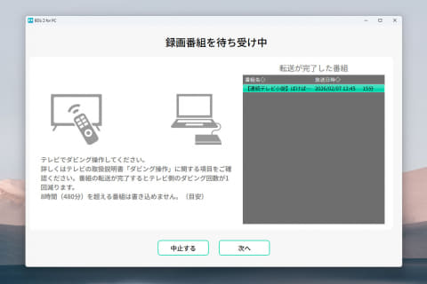 レグザからPC(BDレコ)への転送時間は、15分番組でおよそ2分40秒程度。