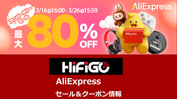 《セール情報》 HiFiGo Store「AliExpress アニバーサリーセール 2026」 セール&クーポン情報まとめ (3/16 16:00~ 3/26 15:59まで) [PR]