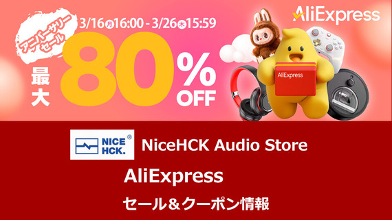 《セール情報》 NiceHCK Audio Store「AliExpress アニバーサリーセール」 セール&クーポン情報まとめ (3/16 16:00~ 3/26 15:59まで) [PR]