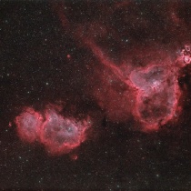 11月19日城里町遠征(3) IC1805 & 1848 Heart & Soul 星雲 2023年11月27日 20:20 19日の城里遠征、赤猫くんの方はというと・・・EOS 6Dにclip filterのSTC Astro Duo-NBをつけてIC1805 & 1848 Heart & Soul 星雲を狙いました。 が・・・わざわざclip filterにしたのに誤算が・・・そもそもこの類のfilterでは輝星にハロが出るのですが、cameraのsencer ...