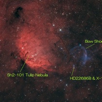 はくちょう座X-1によるバウショック 2024年09月25日 20:51 急に涼しくなり夏も終わりという感じですが、今年の夏もあまり晴天(晴夜)に恵まれず今月一度遠征できただけでした。(前回の記事) そんな中、光害地の自宅から月明かりに構わず晴れれば撮影したのがこれです。8月から撮りため、なんとか22時間半ほどの露出時間にできま ...