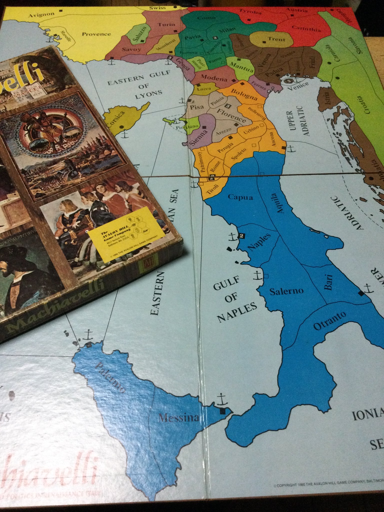 前のブログ記事で中学校3年生から20代前半まで歴史シミュレーションゲームにはまっていたことを書いたが、僕はゲームで友達と対戦をしてもあまり勝ったことがなかった。シミュレーションゲームをプレイする時は、今のようなPCゲーム、ビデオゲームのようなコンピューターAIとの対戦ではないから、友達と1対1かで対戦するか、あるいは上に写真を載せたような近世イタリアでの都市戦争をゲームにした「マキャベリ」の場合は、3人以上でマルチプレイをすることになる。マキャベリのようなゲームだと5人くらいのマルチプレイが一番面白い。