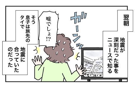 後で聞いたら、地震の時息子は離島に行っていたそうで全く気がつかず、移動のタクシーで運転手さんから聞いたそうです。