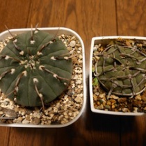 バッテリーを育てる 2022年01月27日 09:00 バッテリーはギムノカリキウム属のサボテンです。春秋の壺という、あまり使われない園芸名もあります。バッテリーと言えば下向き一本トゲが有名ですが、三本トゲもあります。というよりも、最近は三本トゲの強刺タイプが人気な様です。上の写真は、三本トゲの強刺タイプです ...