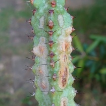 ソマリア物フィリプシオイデス 2022年07月30日 06:00 フィリプシオイデスは、最近少しずつ国内でも販売されるようになってきた、ソマリア原産のユーフォルビアです。去年の冬にあった千葉のイベントで入手しましたが、購入時はトゲが弱くあまり特徴が分からない雰囲気でしたが、最近になってようやく良いトゲが出てきました。し ...