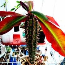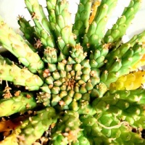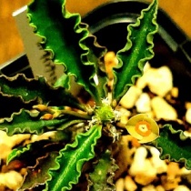 Euphorbia flanaganiiは南アフリカ原産の多肉質なユーフォルビアです。日本では「孔雀丸」の名前があります。一般にタコもの、海外ではMedusoid Euphorbiasと呼ばれるタイプのユーフォルビアで、主頭から一過性の枝を放射状に出します。E. flanaganiiはタコものでは小型で、 ...