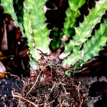 多肉植物の植え替え⑯(2024年5月) 2024年05月07日 06:00 いよいよ今年の植え替えも終盤戦です。今年の植え替えは本日で84鉢目となりました。Pachypodium succulentumスクレンツム(サキュレンタム)は去年大き目の鉢に植えましたが、冬の間に葉が緑色のままポロポロ落ちて何やら不調です。触るとぐらつくため抜いてみます。2021年10月 ...