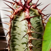 Euphorbia flanaganiiは南アフリカ原産の多肉質なユーフォルビアです。日本では「孔雀丸」の名前があります。一般にタコもの、海外ではMedusoid Euphorbiasと呼ばれるタイプのユーフォルビアで、主頭から一過性の枝を放射状に出します。E. flanaganiiはタコものでは小型で、 ...