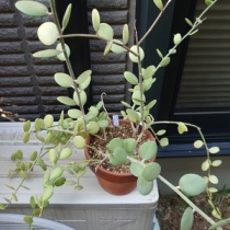 緑の太鼓 2022年05月16日 08:00 緑の太鼓(Green drum)はマダガスカル原産のツル植物です。葉が多肉質でコインの様な形をしており、Silver Dollar PlantとかDollar vineなどと呼ばれています。ツルが増えて鉢が明らかに小さいので、植え替えました。ツルが暴れています。鉢が小さいのでバランスが悪く、風が ...