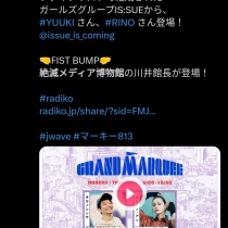 【館長日記_20240617】J-WAVE GRAND MARQUEE FIST BUMP生出演・カセットテープ展示・A4ハレパネ額装 2024年06月17日 00:43 J-WAVEの「GRAND MARQUEE」は平日16時から19時ちょい前までのワイドなラジオ番組です。近視のサエ子さんに「原稿執筆カフェ」をレポートしてもらったことがあるですが今回はスタジオでの収録!緊張します!ペラ1の構成台本が作家さんから送られてくるのですがどう答えるかを ...