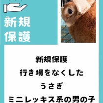 新規保護うさぎの紹介 りすたくん 2026年03月09日 20:00 3月8日、新たに1匹のうさぎを保護しました。 「りすたくん」です。 まずは簡単にプロフィールをご紹介します。 2024年9月生まれ(飼い主申告) 男の子 去勢済み(飼い主申告) ミニレッキスの特徴が強く出ており、ミニレッキス系のミックスと思われます。 今回の保 ...