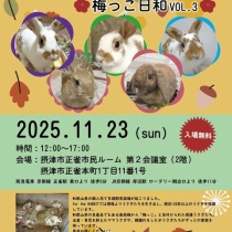 保護うさぎ譲渡会 保護うさぎさんに逢おうの会~梅っこ日和~Vol.3【11/23】 2025年10月28日 20:00 今回は11月23日(日・祝) 開催の 「保護うさぎさんに逢おうの会 〜梅っこ日和 Vol.3〜」のお知らせです。 2月から始まった「梅っこレスキュー」のうさぎたちによる、3回目の譲渡会を開催します。 これまでの譲渡会では、たくさんの梅っこたちが新しいおうちとのご縁をつなぐこ ...