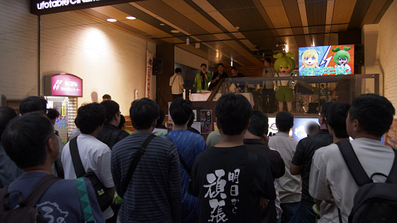 ゲームに興じるファンたちを見つめるずんだもん。