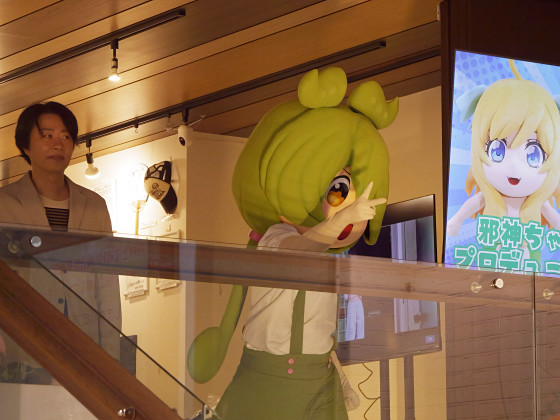 ステージの奥からずんだもんと邪神ちゃんインパクトが登場。なお、邪神ちゃんインパクトが何者なのかは、邪神ちゃんドロップキックの第279話を読むと分かります。