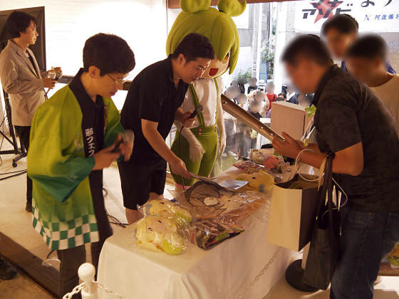邪神ちゃんドロップキックと東北ずん子・ずんだもんプロジェクトのプロデューサーたちがトークを繰り広げる「ファン参加型!邪神ちゃん対ずんだもんプロデューサートークバトル」がマチ★アソビ Vol.29の2日目に実施されました。イベントの後半には多すぎるほどのグッズが来場者に配られました。