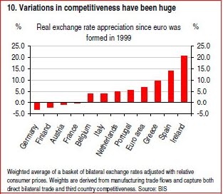 一昨日取り上げた中国の話と共通するが、名目為替レートがユーロという形で固定されていても、インフレ率(や貿易構成)に差があれば、このように実質為替レートもばらけるわけだ。