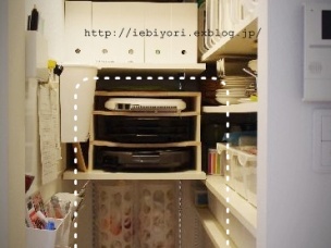 1畳パントリーの収納 その5 1畳パントリーの収納 その5 長くなってしまった1畳パントリー内の収納紹介もこれで最後です。 今回は正面可動棚の3段目以降について。 可動棚3段目は、ホットプレートなど場所を取るものの定位置にしました。 プレート類のサイズにぴったりあわせて自作した簡単な棚、 準備したのは、