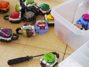 電池収納と夏のお買い物続編 電池収納と夏のお買い物続編 プラレールに仮面ライダーのベルトに変身アイテム…、 我が家にはシンプルライフ愛好家やミニマリストの方々から 溜息が出そうなおもちゃたちがたっぷりあります。 カラフル、プラスチック、音が出る…、なんでもあり(汗 もちろん電池必須で、時々電池交換タイムが必要に