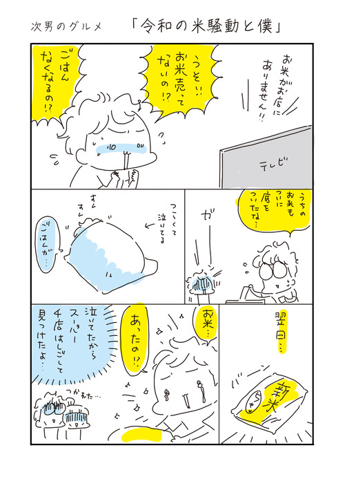 次男のグルメ「令和の米騒動と僕」 2024年09月19日 ********登場人物********我が家は私(アベナオミ)と3歳年上の夫長男豆キチ(15歳 中学3年生) 霊感強い 次男アンチョビ(9歳 小学3年生)大食い 長女モナカ(5歳 幼稚園年長)体力オバケ5人家族の日常をお届けいたします。*********** ... 続きを読む
