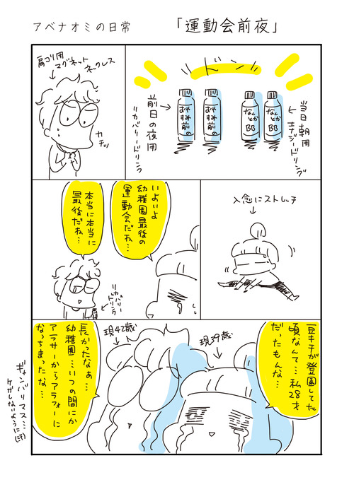 ラスト運動会前夜の私たち 2024年09月28日 ********登場人物********我が家は私(アベナオミ)と3歳年上の夫長男豆キチ(15歳 中学3年生) 霊感強い 次男アンチョビ(8歳 小学3年生)大食い 長女モナカ(5歳 幼稚園年長)体力オバケ5人家族の日常をお届けいたします。*********** ... 続きを読む