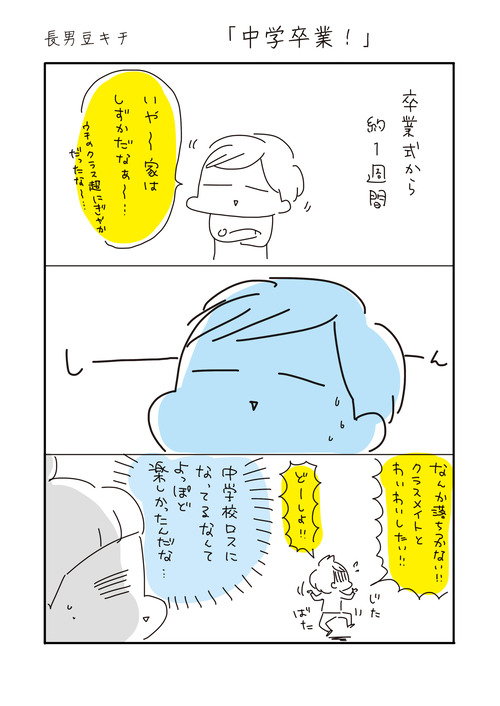 長男豆キチ「中学卒業!」 2025年03月19日 ********登場人物********我が家は私(アベナオミ)と3歳年上の夫長男豆キチ(15歳 中学3年生) 霊感強い 次男アンチョビ(9歳 小学3年生)大食い 長女モナカ(6歳 幼稚園年長)体力オバケ5人家族の日常をお届けいたします。*********** ... 続きを読む