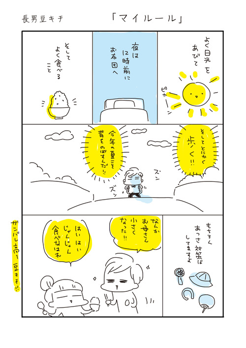 長男豆キチ「マイルール」 2025年06月28日 ********登場人物********我が家は私(アベナオミ)と3歳年上の夫長男豆キチ(15歳 高校1年生) 霊感つよつよ男子 次男アンチョビ(9歳 小学4年生)大食い男子 長女モナカ(6歳 小学1年生)体力オバケ5人家族の日常をお届けいたします。****** ... 続きを読む