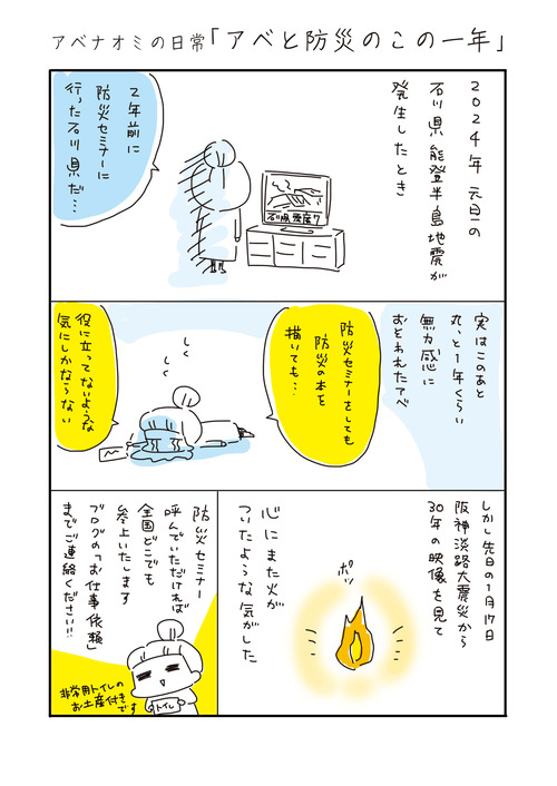 アベナオミの日常「アベと防災とこの一年」 2025年01月20日 ********登場人物********我が家は私(アベナオミ)と3歳年上の夫長男豆キチ(15歳 中学3年生) 霊感強い 次男アンチョビ(9歳 小学3年生)大食い 長女モナカ(6歳 幼稚園年長)体力オバケ5人家族の日常をお届けいたします。*********** ... 続きを読む