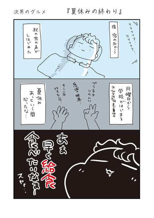 次男のグルメ「夏休みの終わり」 2025年08月23日 ********登場人物********我が家は私(アベナオミ)と3歳年上の夫長男豆キチ(16歳 高校1年生) 霊感つよつよピアノ男子 次男アンチョビ(9歳 小学4年生)大食い男子 長女モナカ(6歳 小学1年生)体力オバケ5人家族の日常をお届けいたします。*** ... 続きを読む
