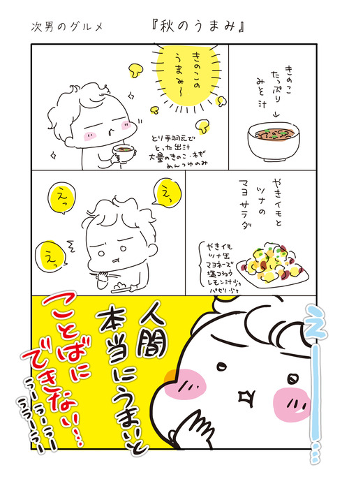 次男のグルメ「秋のうまみ」 2025年11月10日 ********登場人物********我が家は私(アベナオミ)と3歳年上の夫長男豆キチ(16歳 高校1年生) 霊感つよつよピアノ男子 次男アンチョビ(10歳 小学4年生)大食い男子 長女モナカ(6歳 小学1年生)体力オバケ5人家族の日常をお届けいたします。*** ... 続きを読む