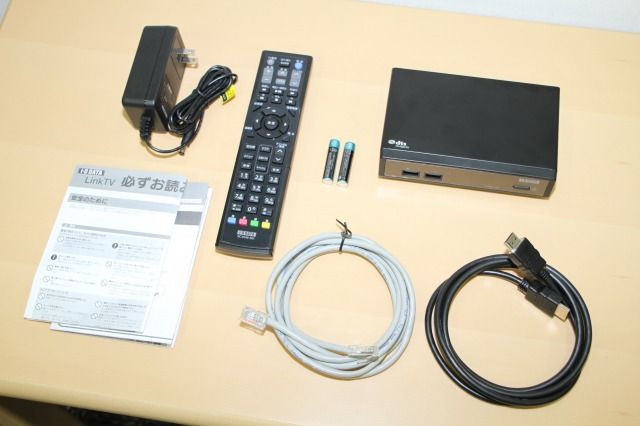 パッケージには、専用ACアダプター、専用リモコン(※)、単4乾電池×2(動作確認用)、HDMIケーブル(1.5m)、LANケーブル(1.8m)、取扱説明書2部(「必ずお読みください」 「接続ガイド」)などが付属される。